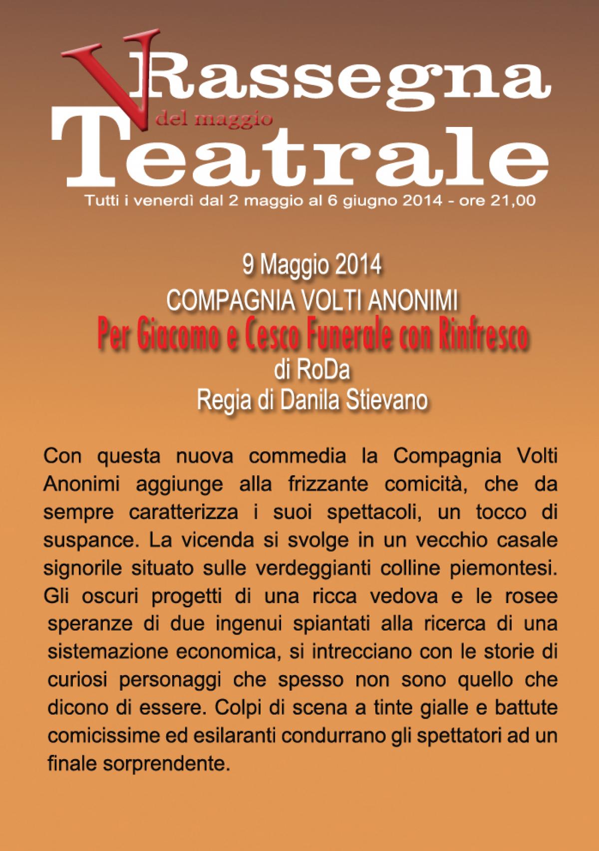 E' vero, in alcuni Paesi i funerali si fanno con rinfresco, per accogliere parenti e amici ma, in questo caso, stiamo parlando della Rassegna Teatrale del Dopolavoro Ferroviario di Torino. Salone Teatro di Via Sacchi, 63 - 9 maggio, ore 21,00
