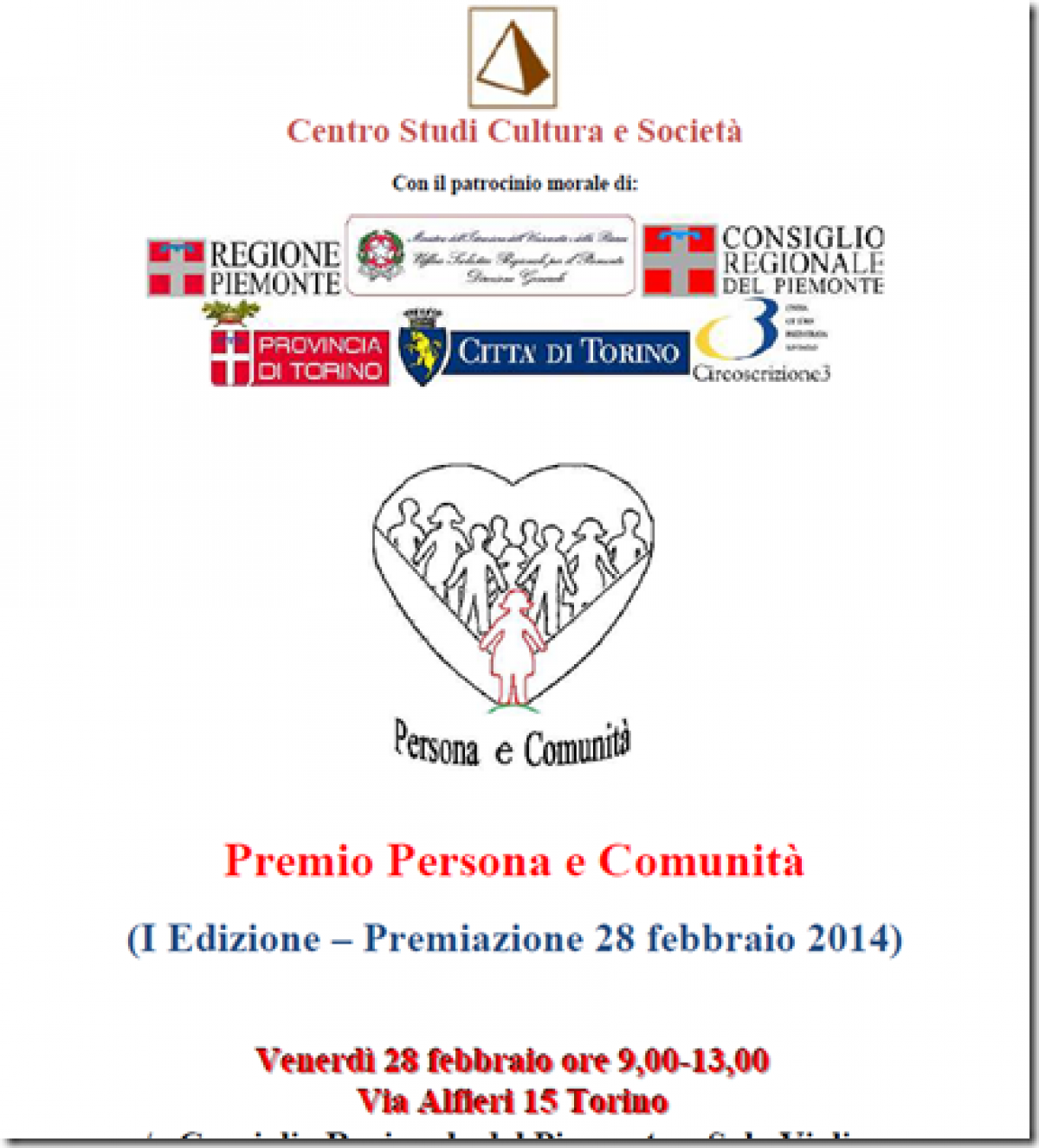 L'Associazione "Affetti Collaterali" vince il 1° Premio "Persona e Comunità" per la Sezione B, "Cultura e tempo Libero". Il premio è assegnato dal Centro Studi Cultura e Società e la consegna avverrà il 28 Febbraio. Complimenti Affetti Collaterali...!